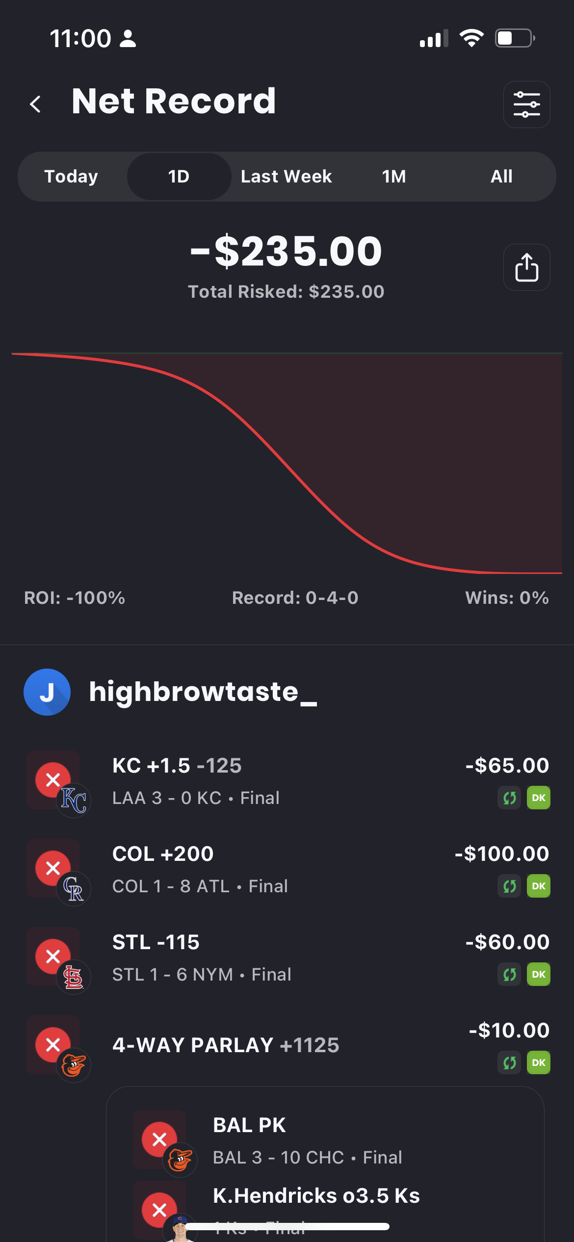 I am a firm believer in using the Action app. You can sync the app up to multiple sportsbooks and see your overall record, ROI and daily/weekly/monthly trends.